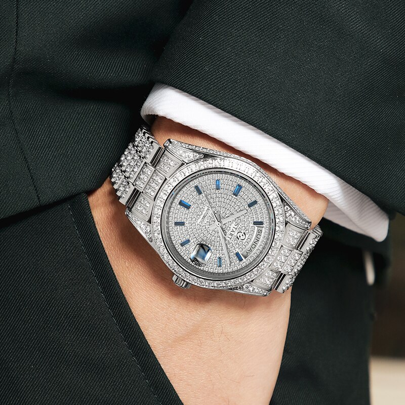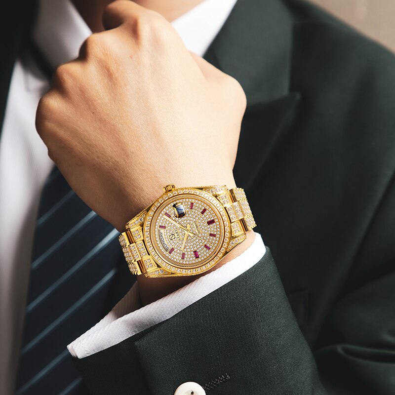 Diamond-studded men's watch automatic mechanical watch official authentic Gypsophila men's watch golden watch reliable quality