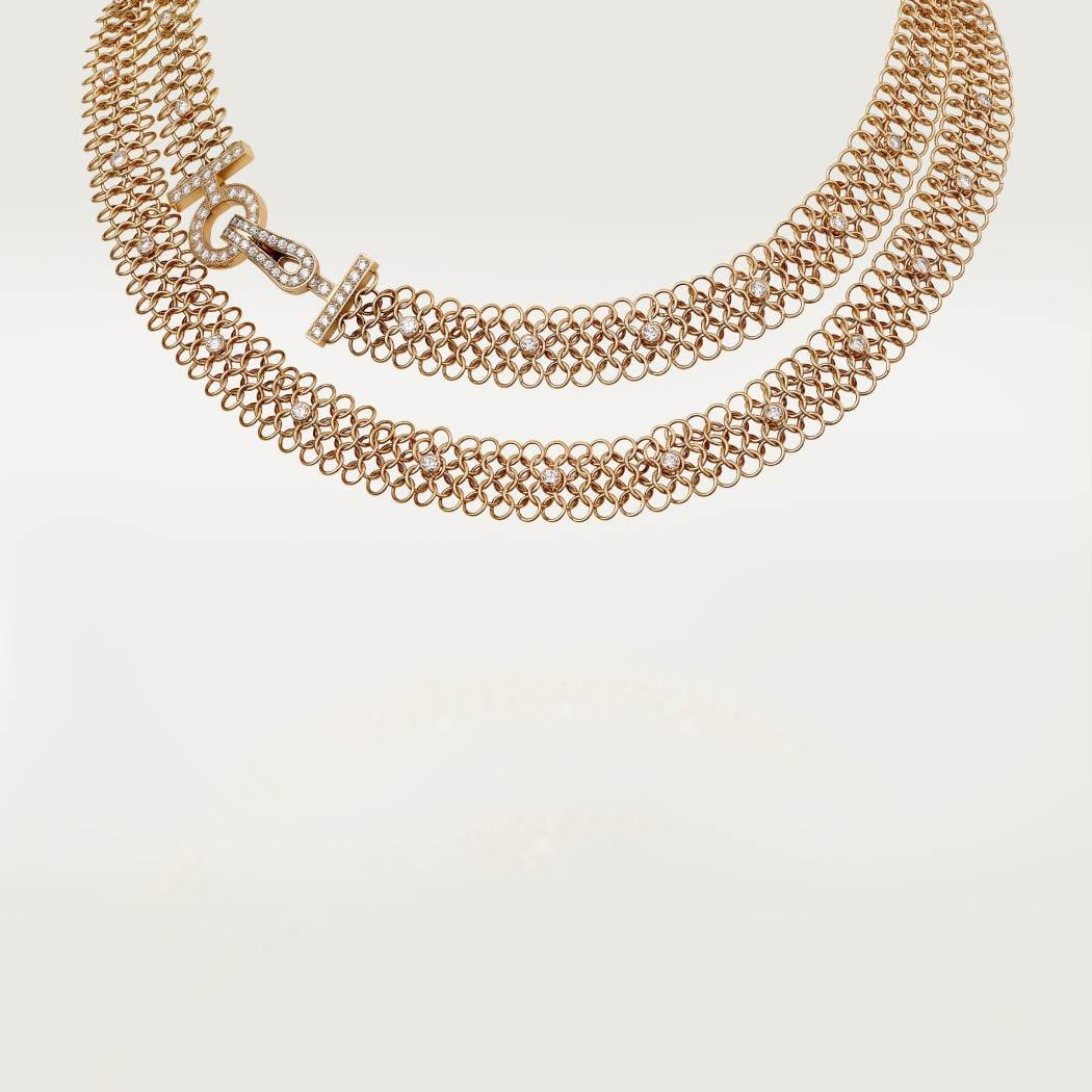 AGRAFE RÉSILLE necklace, 750‰ rose gold, set with 102 round brilliant-cut diamonds, totaling 5.10 carats.
